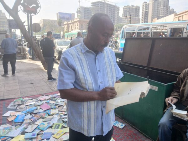 قدم العم جمال حسين من أسوان، ندهته القاهرة قبل 40 عامًا، واختارته مهنة بيع الكتب التي ورثها عن أبيه، قبل أن يختارها. لا يزال العم جمال يسافر كل شهر لجمع كتبه من محافظات بعيدة ومنها المنصورة وطنطا، ينتقي بعين جواهرجي يعرف ما يريده زبائنه المستديمين والذين يعرفونه ويعرفهم عن قرب. يعود “جمال” ليفرز غنيمته يوم الجمعة، قبل أن يتفنن في عرضها على الرصيف أعلى محطة “جمال عبد الناصر”، وإلى جانبه يقف العم السيد أحد أقدم باعة الكتب في المنطقة.