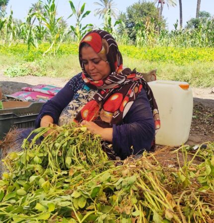 وخلال جولة ميدانية لـ «صوت البلد» داخل الحقول، تتجسد ملامح موسم الحصاد في مشاهد إنسانية متكررة، حيث يعمل الرجال على اقتلاع نبات الفول السوداني من الأرض، بينما تجلس السيدات تحت مظلات بدائية مصنوعة من الأخشاب والشكاير، لبدء مرحلة التقطيف وفصل الثمار عن جذور النبات.
