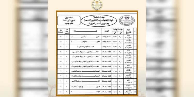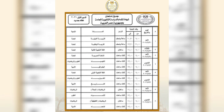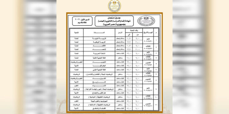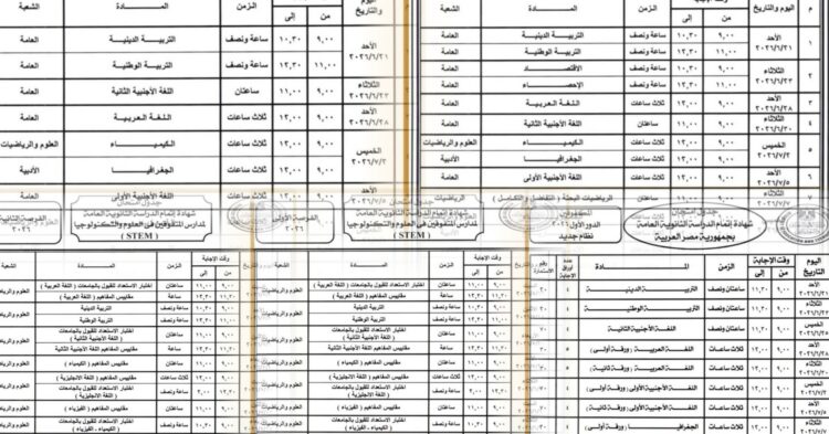 “صوت البلد” تنشر الجداول التفصيلية التي توضح ترتيب المواد لكل شعبة، والتي قد جاءت كالآتي: