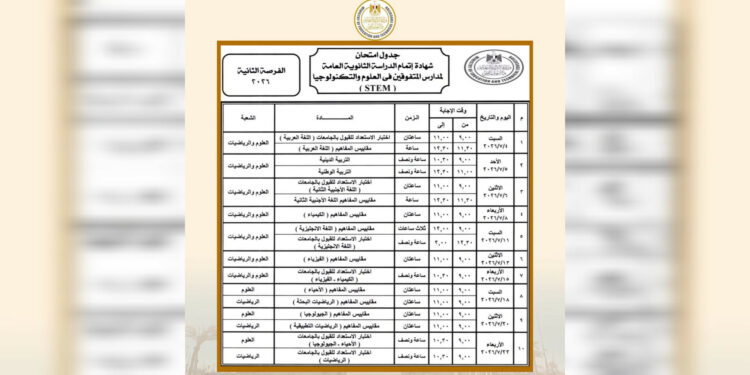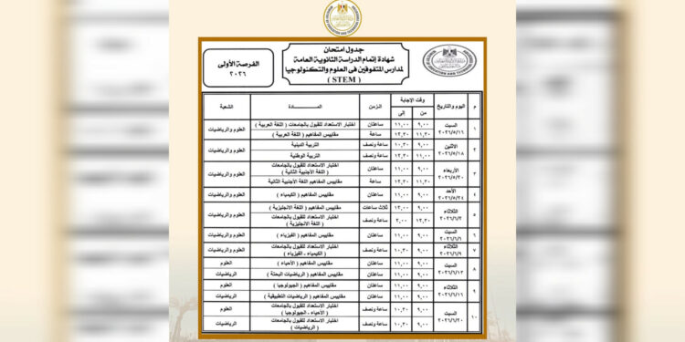 وحددت الجداول المعتمدة موعد انطلاق الامتحانات لتبدأ يوم السبت الموافق 21 يونيو 2026، على أن تستمر أعمال اللجان والامتحانات تباعاً لمختلف الشعب الدراسية حتى تنتهي رسمياً يوم الخميس الموافق 16 يوليو 2026، مع مراعاة كافة العطلات الرسمية خلال هذه الفترة.
