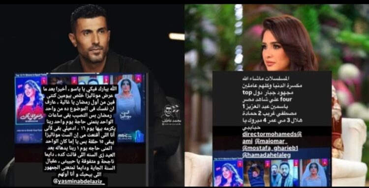 ومن ناحية آخري قامت الفنانة ياسمين عبدالعزيز بنشر قصة (story) عبر انستجرام بصورة تحمل  مسلسل «وننسي اللي كان» وهو يتصدر قائمة الأعلي مشاهدة ويأتي الست موناليزا في المركز الرابع وعلقت “المسلسلات ماشاء الله مكسرة الدنيا وكلهم عاملين مجهود جبار دول top four علي شاهد مصر، “ياسمين عبدالعزيز 1، مصطفي غريب 2، حمادة هلال 3، مي عمر 4”.