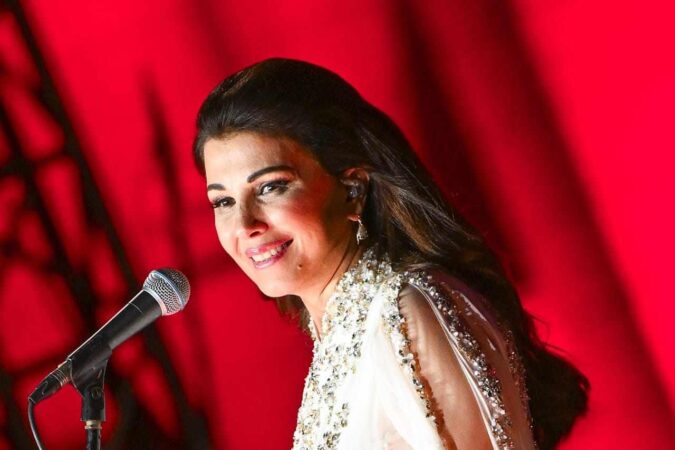 بعدها توجهت إلى خشبة المسرح، حيث رافقتها الفرقة الموسيقية بقيادة المايسترو العالمي نادر عباسي، وافتتحت الأمسية بكلمة مؤثرة عبّرت خلالها عن حبها الكبير لمصر وشعبها، مؤكدة مكانة مصر الخاصة في قلبها، وسط تفاعل واسع وهتافات إعجاب من الحضور.