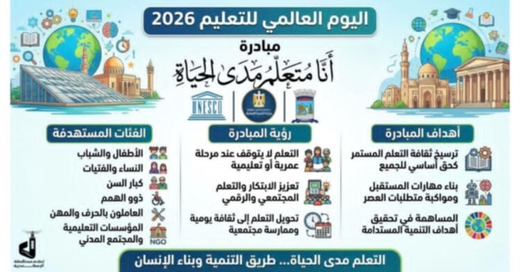 من جديد، تثبت الإسكندرية أنها ليست مجرد مدينة للملح والنوّات، بل هي “عاصمة المعرفة” التي لا تشيخ فبالتزامن مع الاحتفال باليوم العالمي للتعليم لعام 2026 وتحت رعاية الفريق أحمد خالد حسن سعيد، محافظ الإسكندرية، أطلقت المحافظة مبادرة “أنا متعلم مدى الحياة”، بالتنسيق مع وزارة التنمية المحلية ومعهد اليونسكو للتعلم مدى الحياة (UIL).